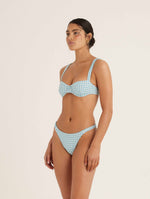 A peony favourite, our Holiday Pant in Chambray Gingham is stylish and ultra flattering. Featuring ruches sides and a flattering high cut with skimpy coverage. Complete your dream swimsuit with our Chambray Gingham separates.