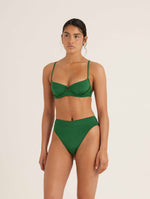 Inspired by the ’90s and reimagined for the modern romantic, the Mid High Cut Pant sits comfortably at the mid waist with a higher leg cut to create a beautifully elongated silhouette. Chic, modest, and effortlessly flattering, this timeless style pairs perfectly with your favourite Bottle Green top to complete your dream swimsuit.