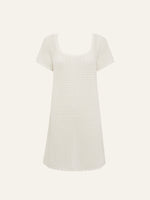 Inspired by the timeless allure of Jane Birkin, this 60s inspired mini dress features a softly scooped neckline, simple cap sleeve and mini length. Crafted from our signature pointelle crochet to transcend seasons, it's a perennial piece to carry you from sunlit days to afternoon beach strolls.