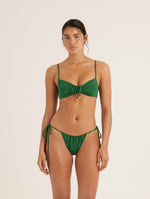 Destined for sun – soaked days, the Solstice Crop returns in Bottle Green, an ode to summers spent in the Mediterranean. Featuring soft ruching detail and an adjustable carriageway, creating an utterly chic and minimal silhouette.